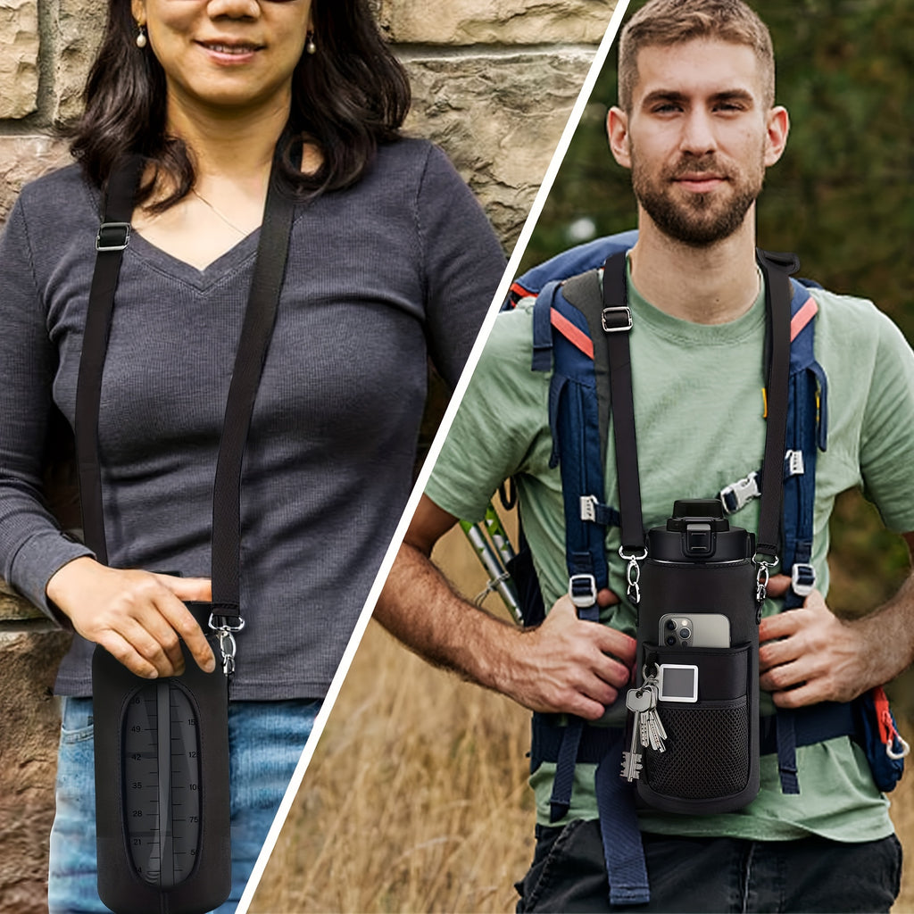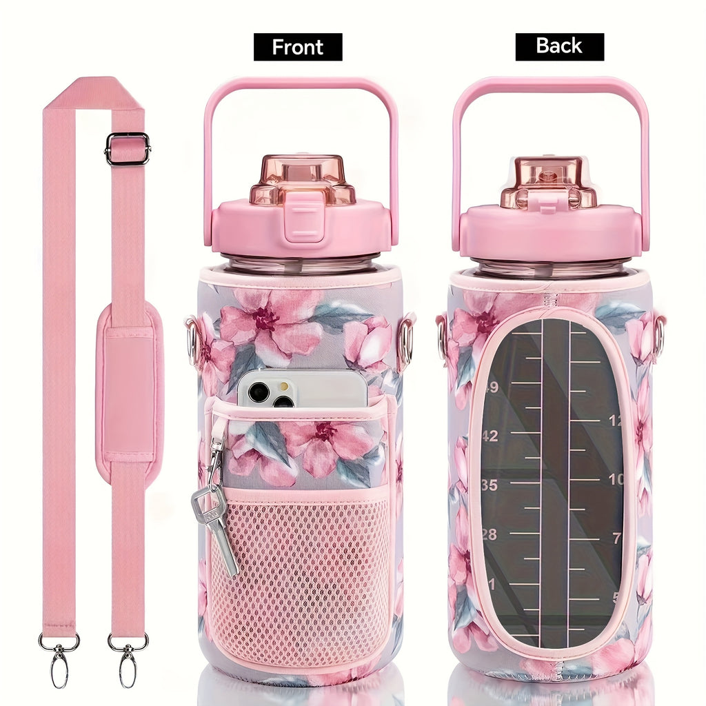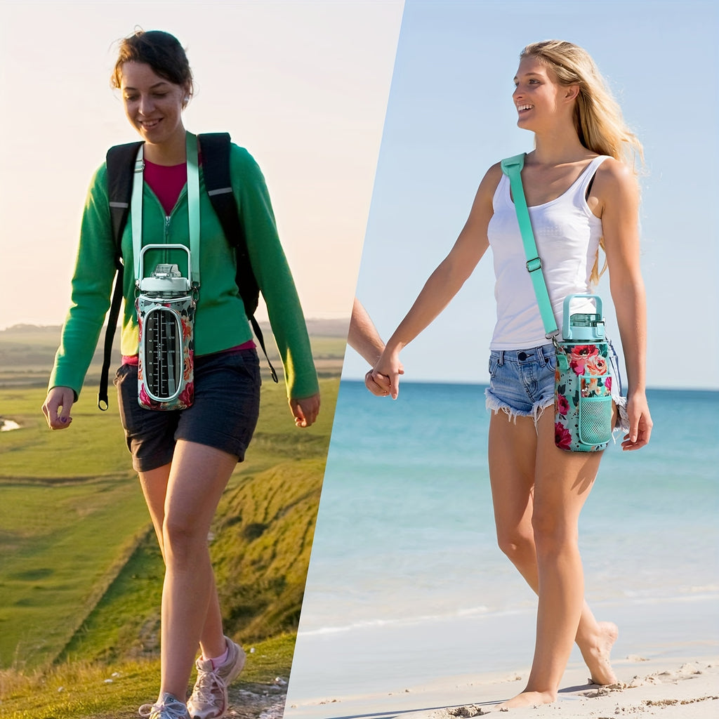 Garrafa de água à prova de vazamentos com canudo e tampa para beber direto, reutilizável, isolada, com capa de armazenamento e alça.