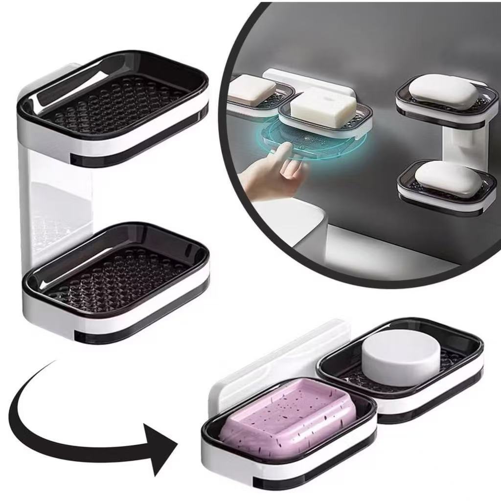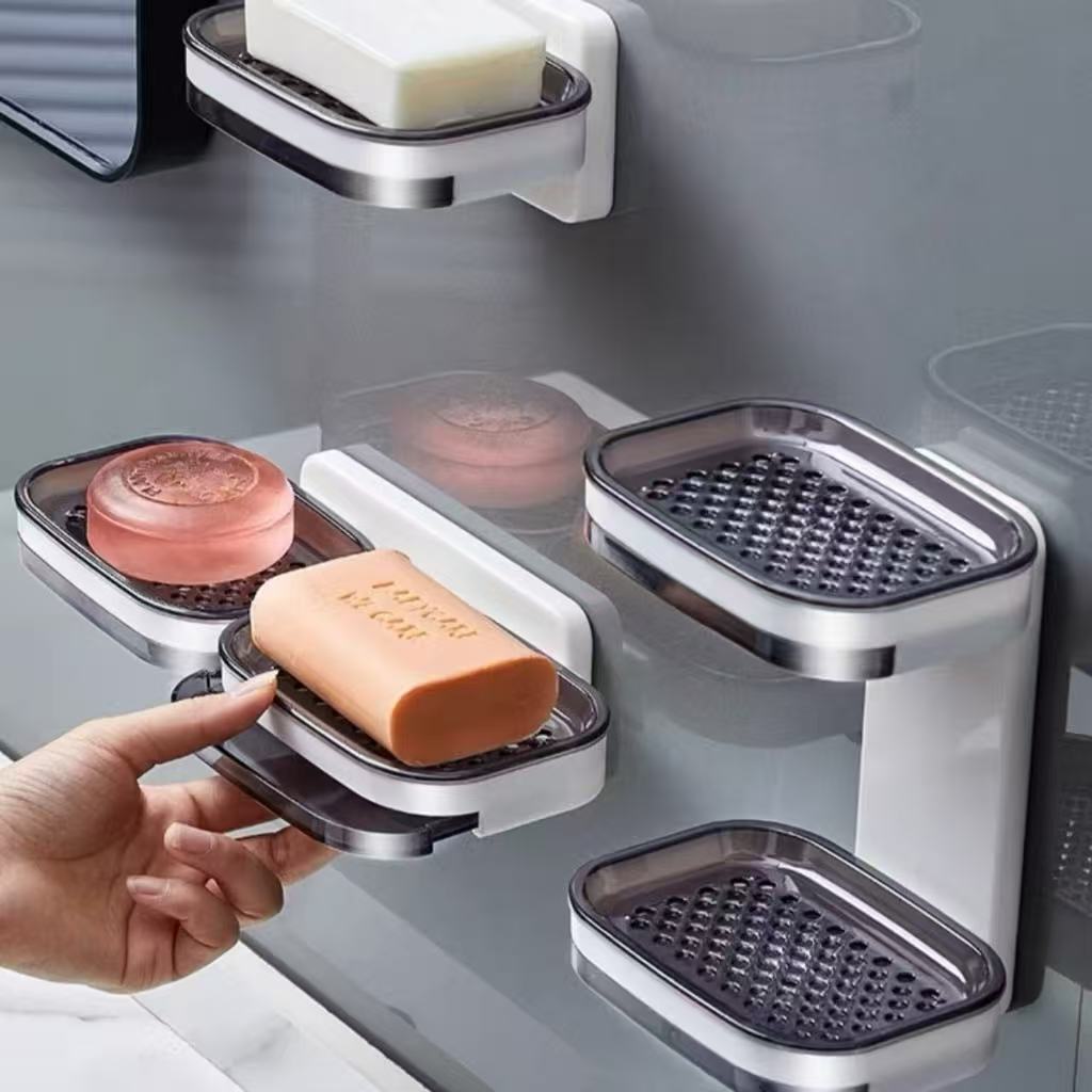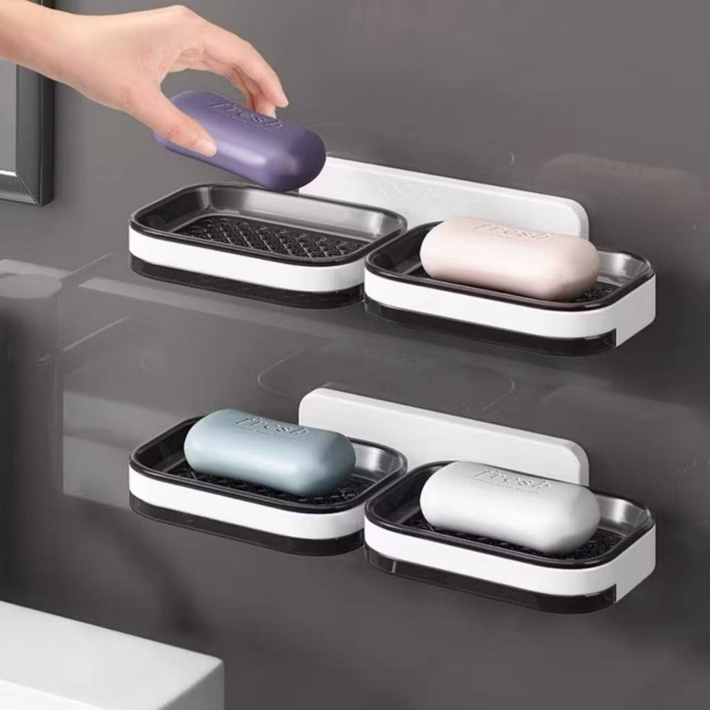 Saboneteira com drenagem para banheiro, organizador de parede de camada única ou dupla.