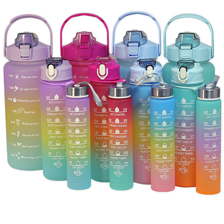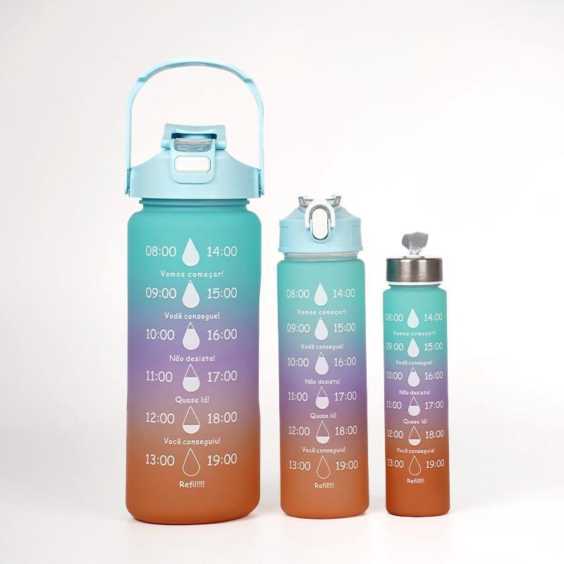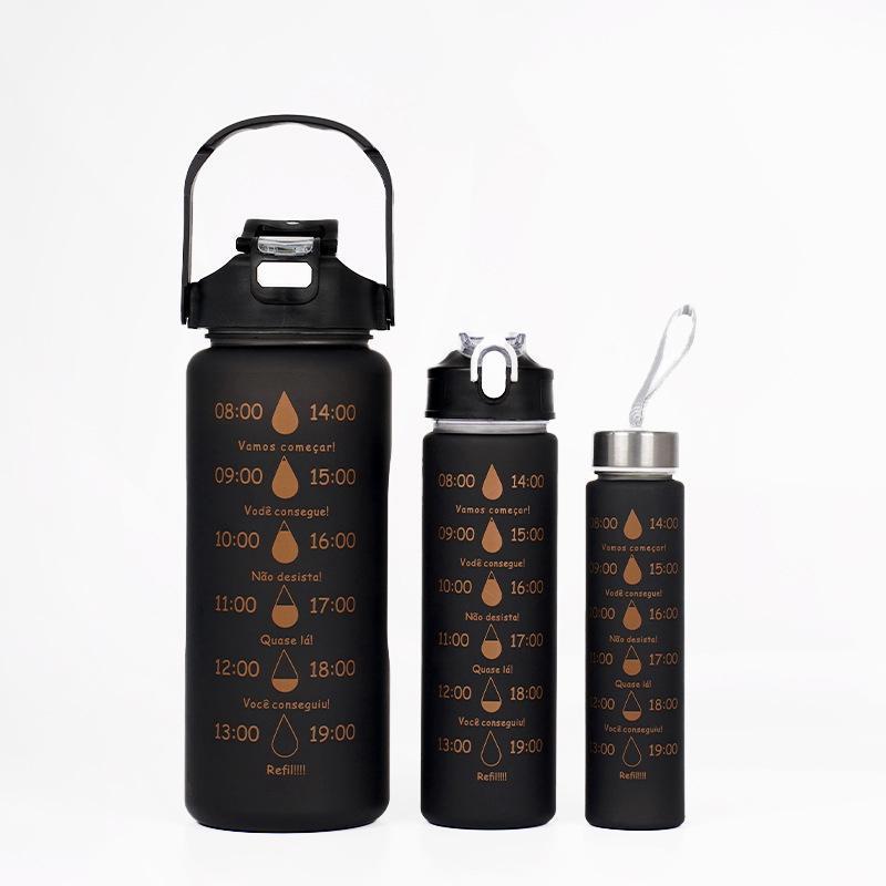 Conjunto de Garrafas Motivacionais para Academia e Fitness - 3 Peças (2000ml, 900ml, 300ml) - Design 2D e 3D.