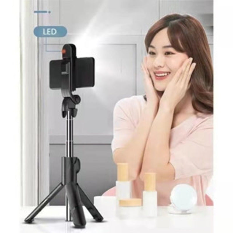 Com o Bastão de Selfie com Tripé e Luz LED Retrátil, cada clique vira uma lembrança iluminada 🌟