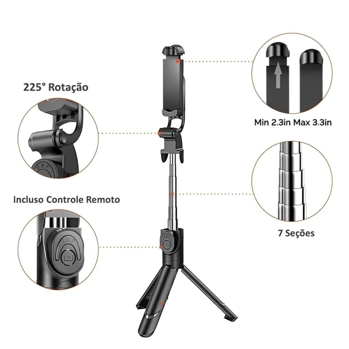 🎥 Tripé embutido: use como bastão ou suporte fixo para gravações estáveis e sem tremores.