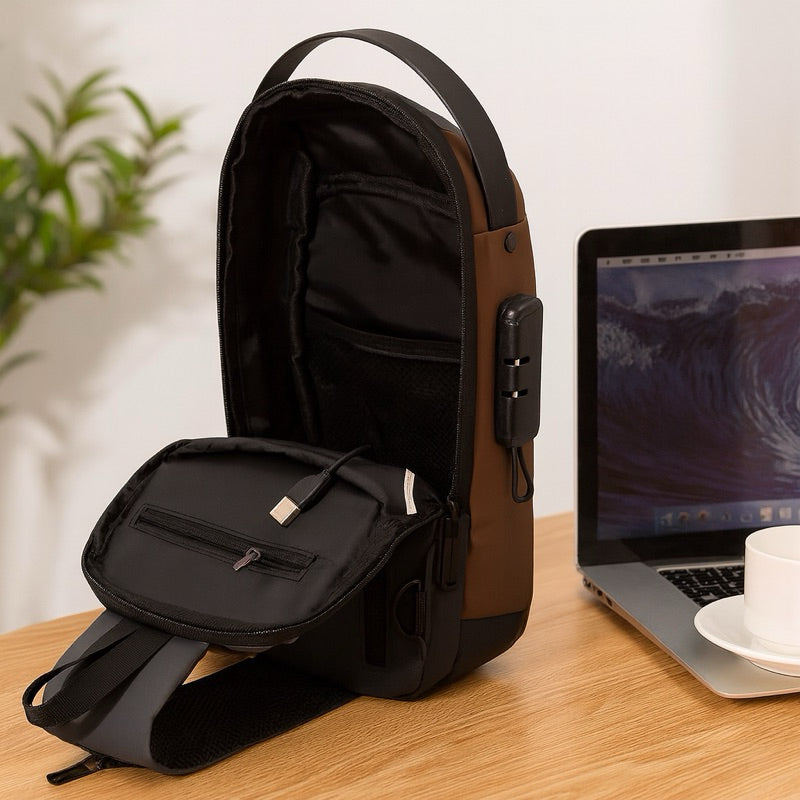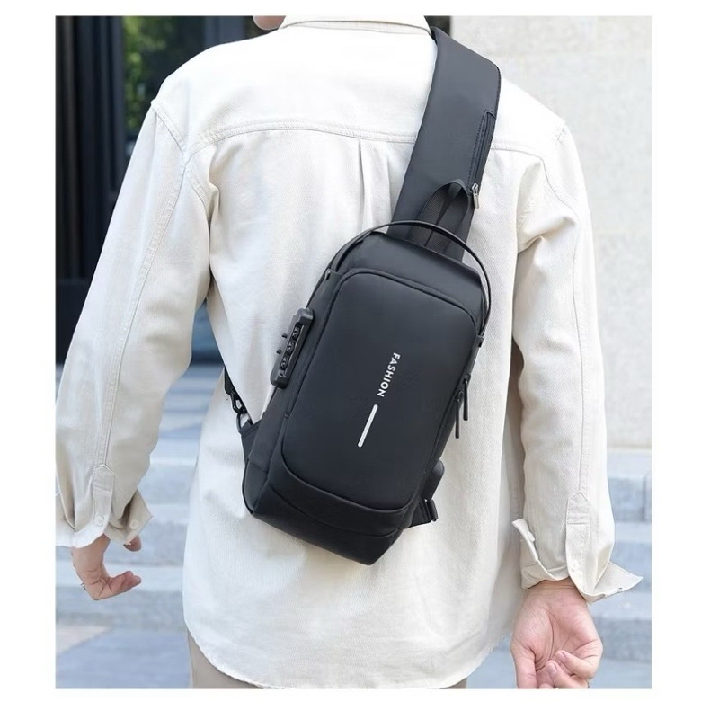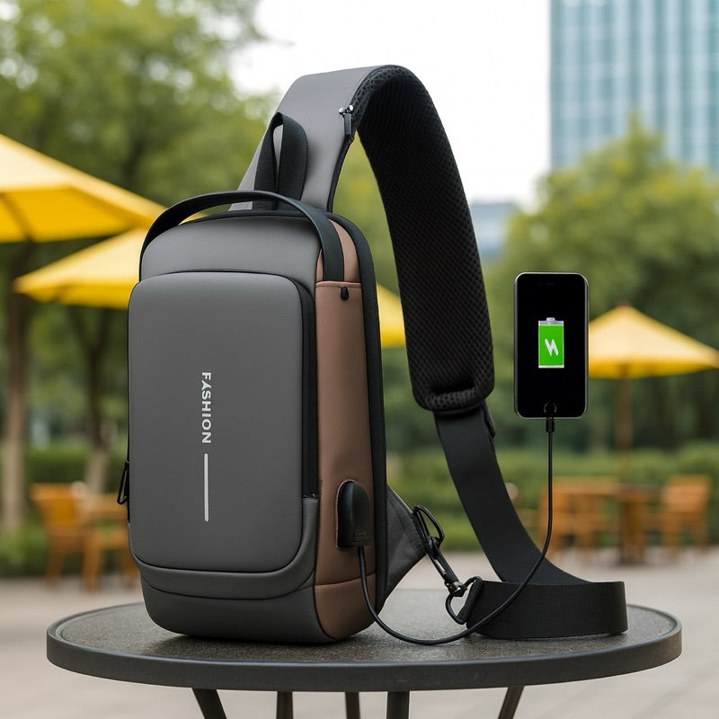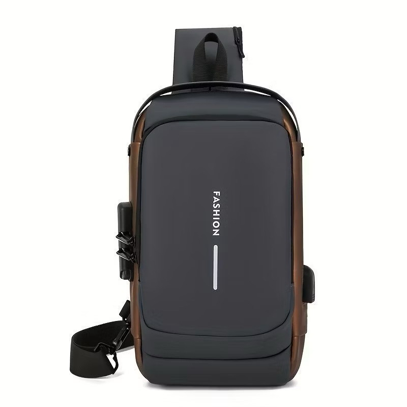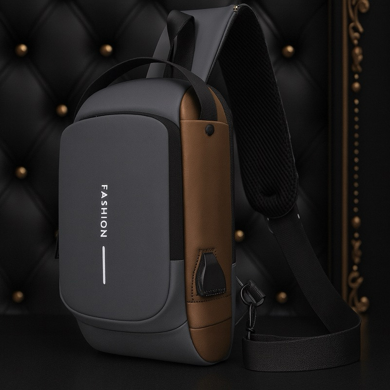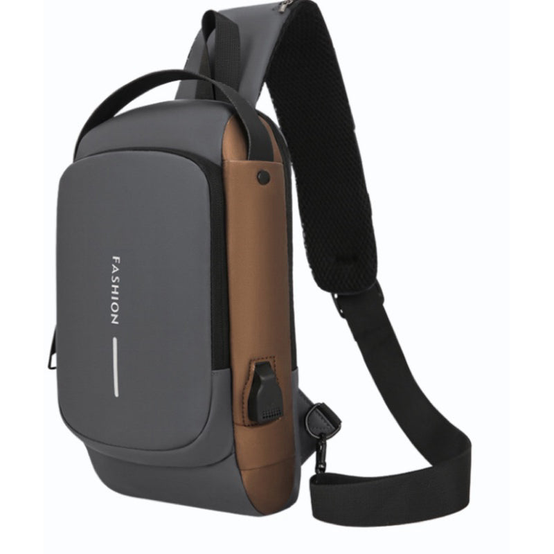 Pochete Transversal COR: CINZA, Antifurto com Fecho Impermeável Tecido Macio Unissex Casual.