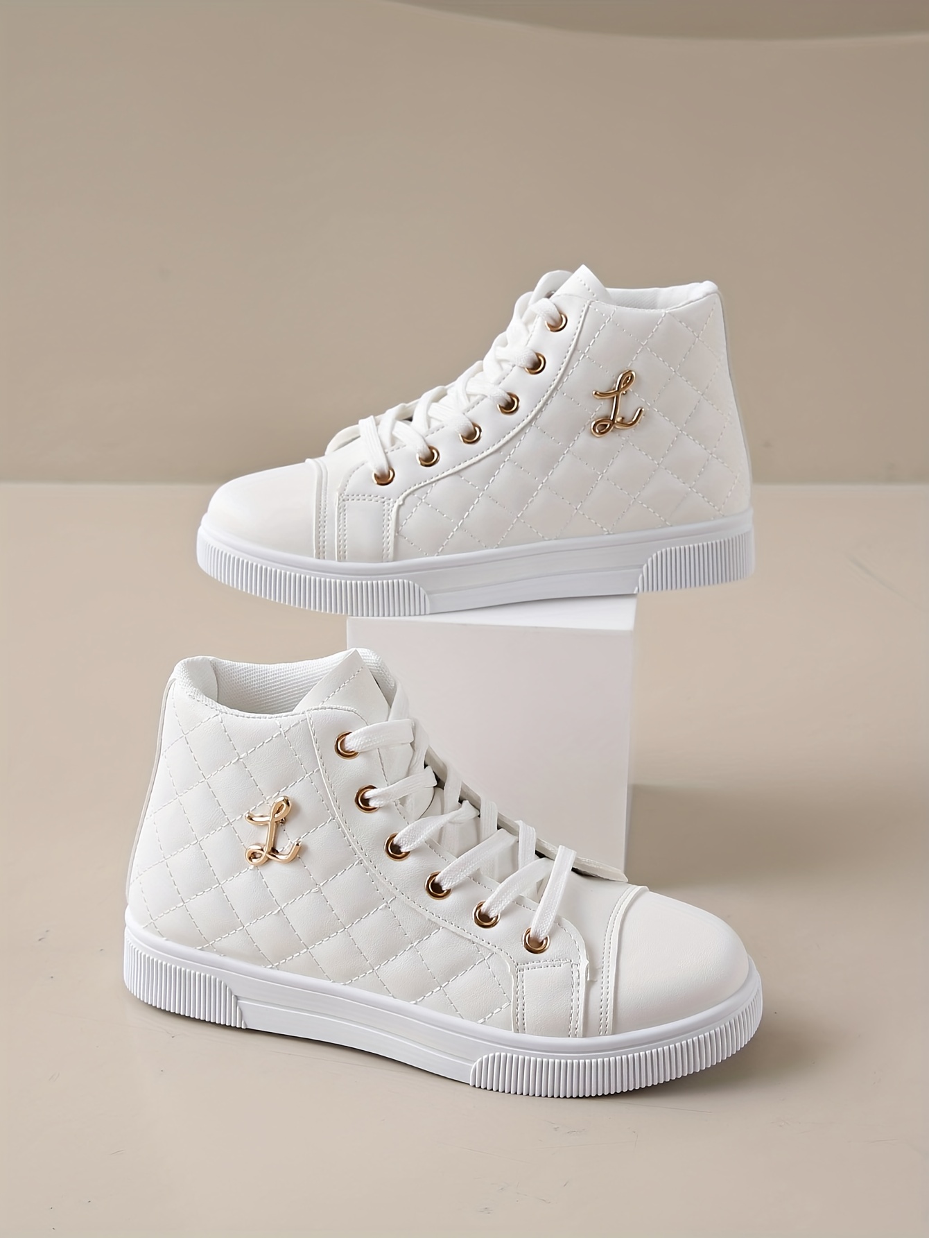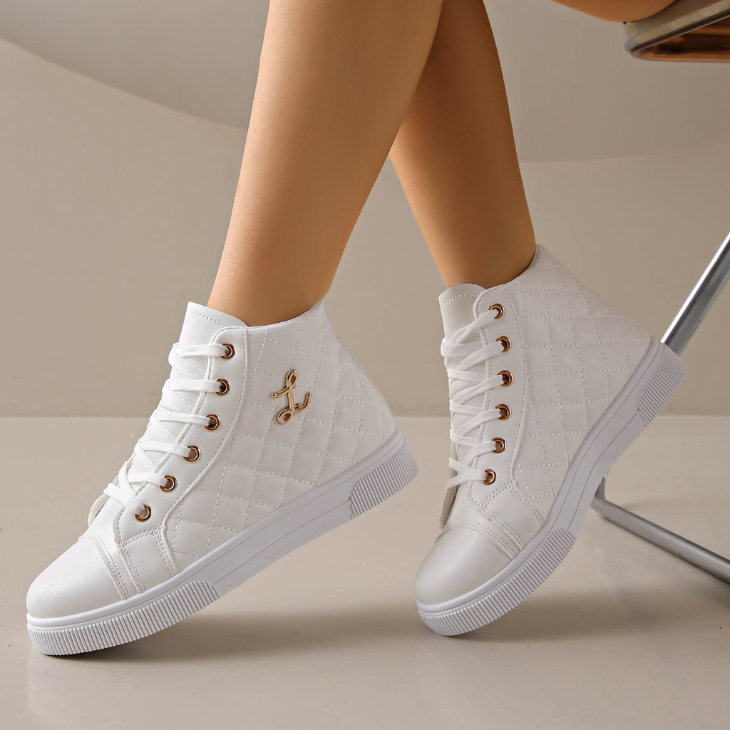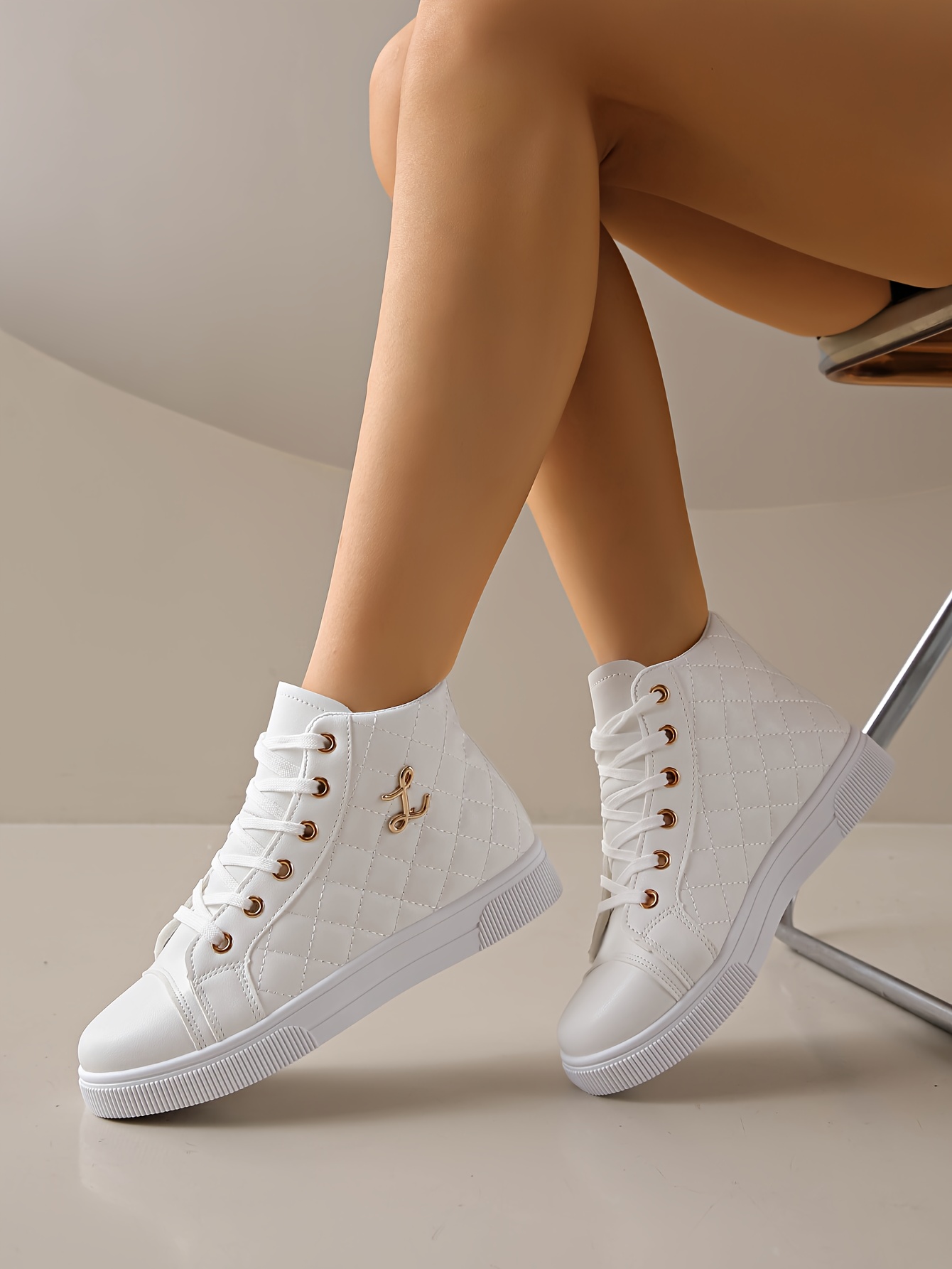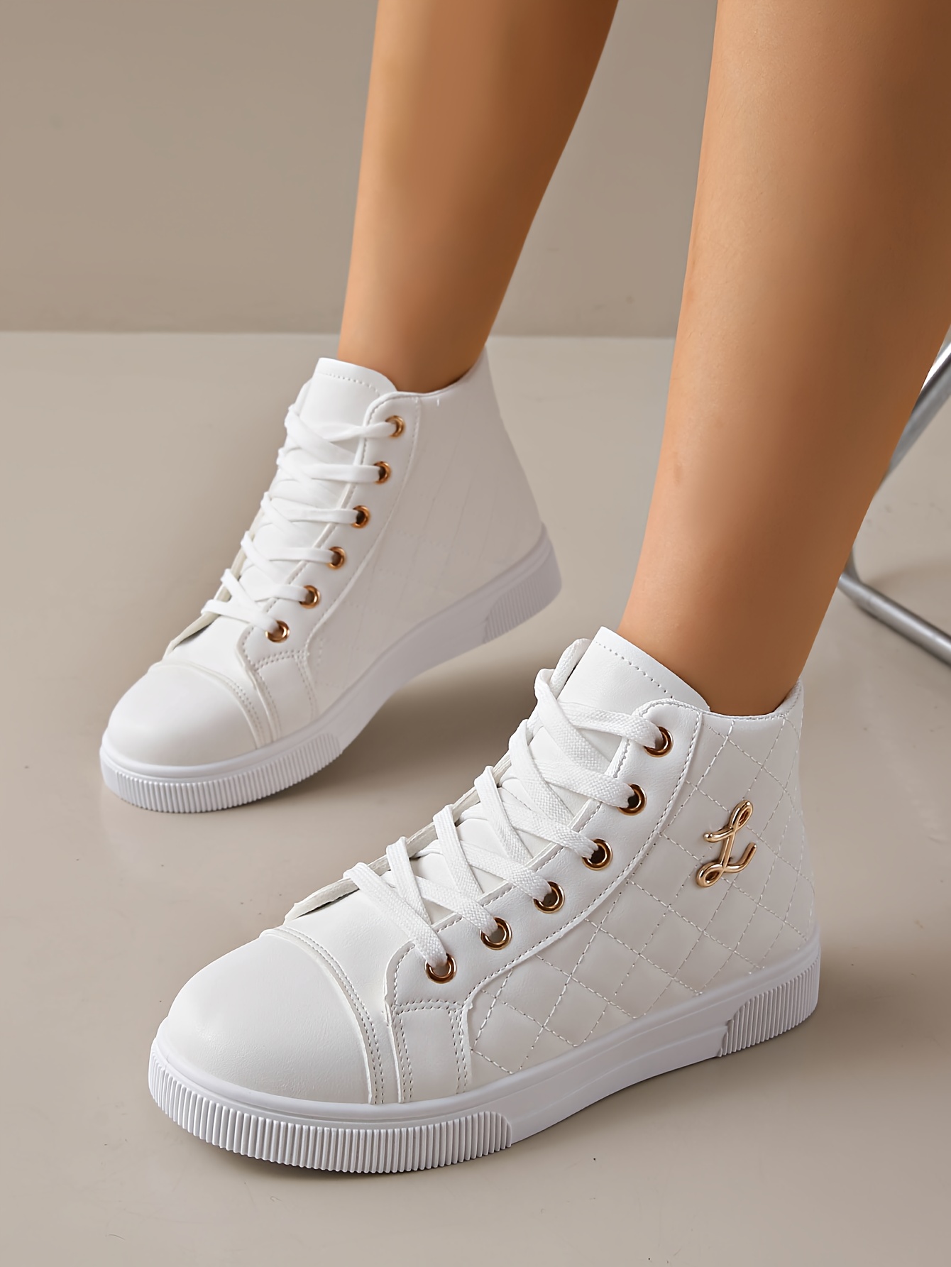Tênis feminino branco com forro sintético brilhante.