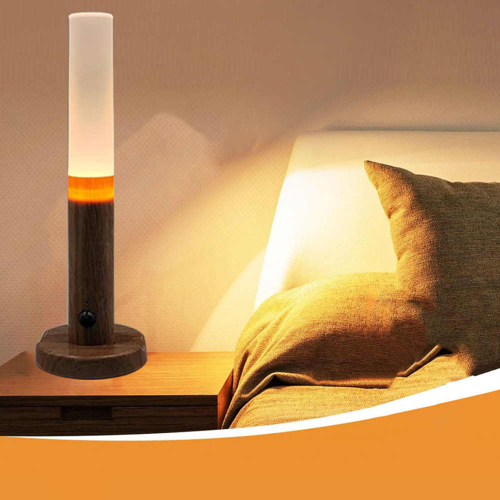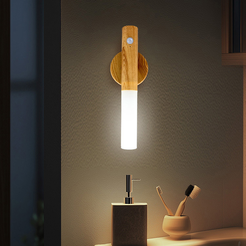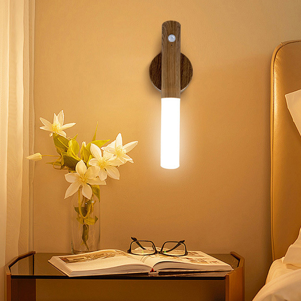 Conjunto de 2 Luminárias Noturnas de Parede Sem Fio com Sensor de Movimento e Adesivo Magnético, Recarregáveis via USB, com Design em Madeira.