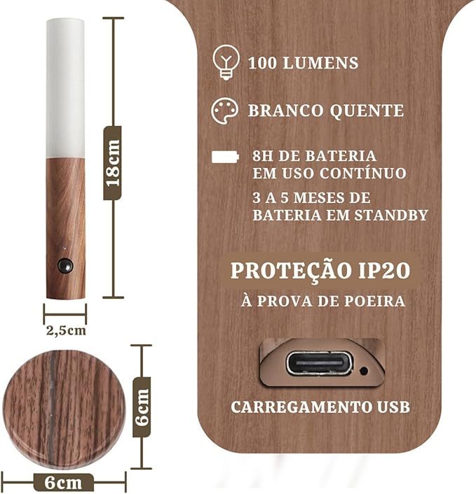 Perfeita para quartos, corredores, escadas, banheiros ou como luz noturna de cabeceira.
