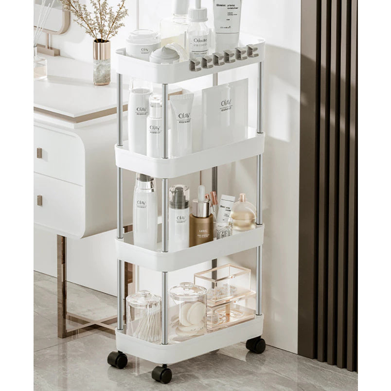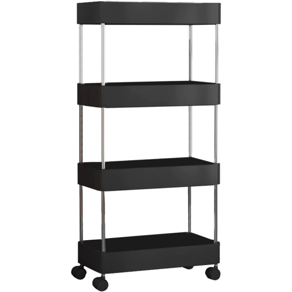 Desliza com facilidade entre os ambientes e possui travas de segurança para manter a prateleira firme no lugar quando necessário.
