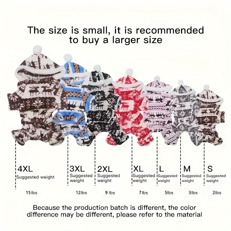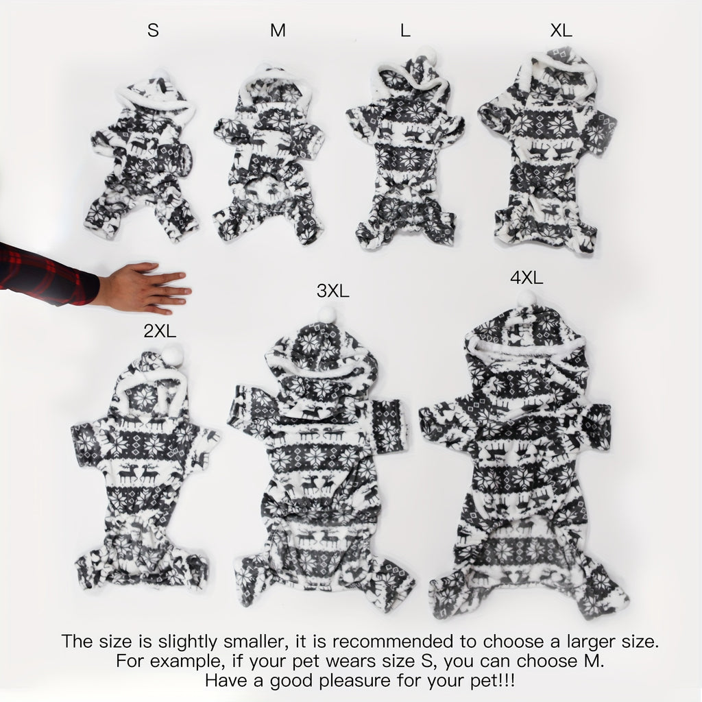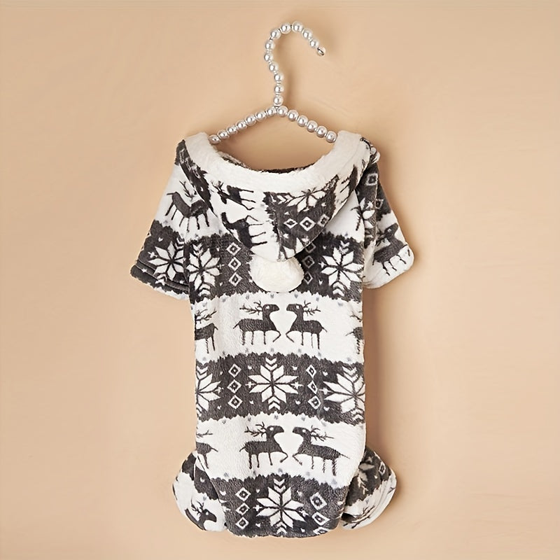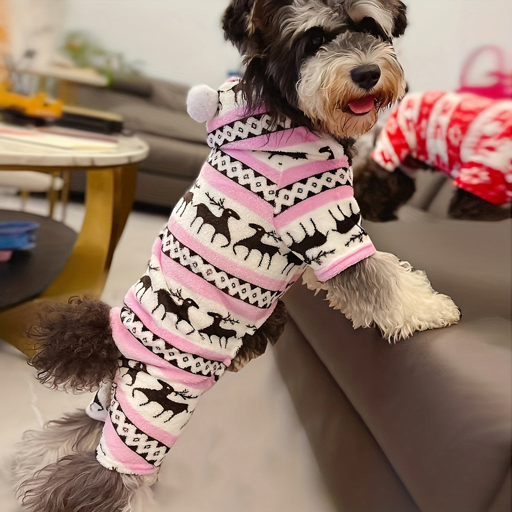 Pijama de Natal para animais de estimação com capuz e estampa de rena.