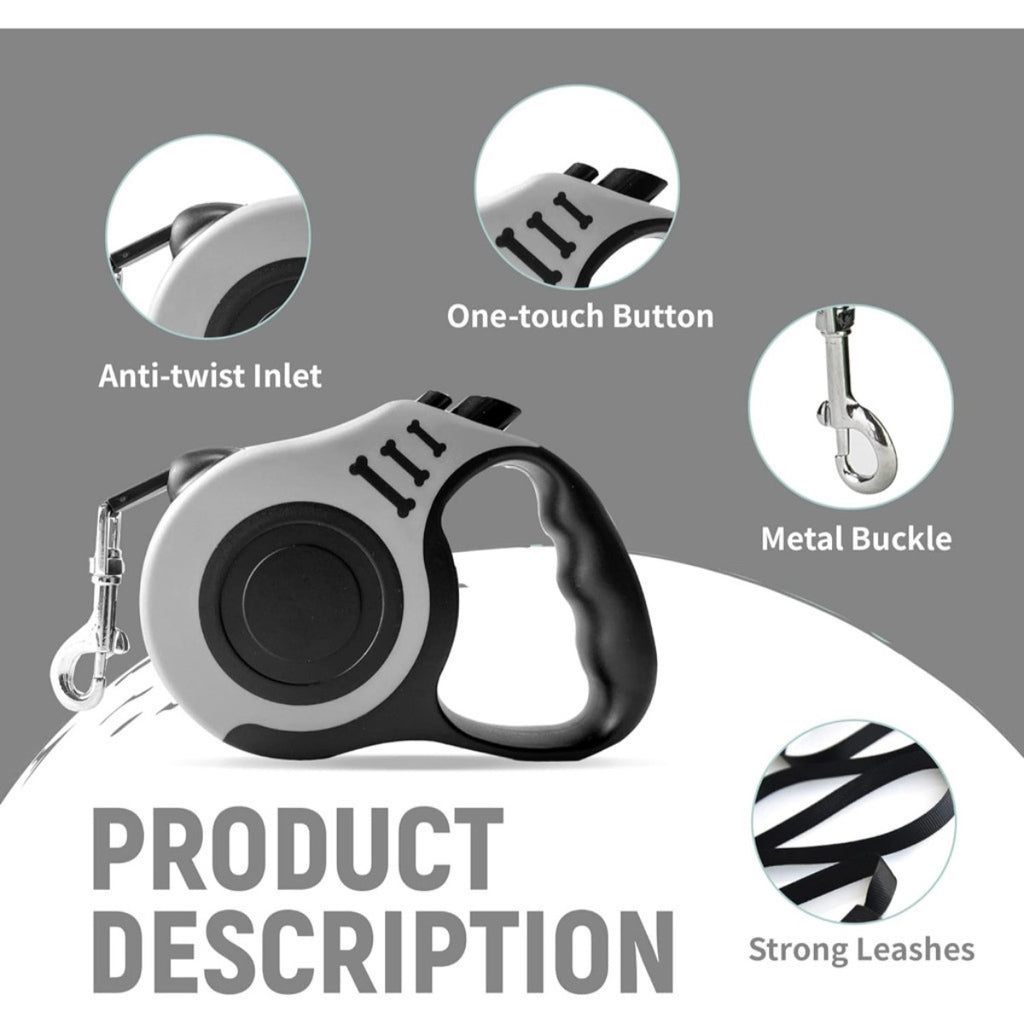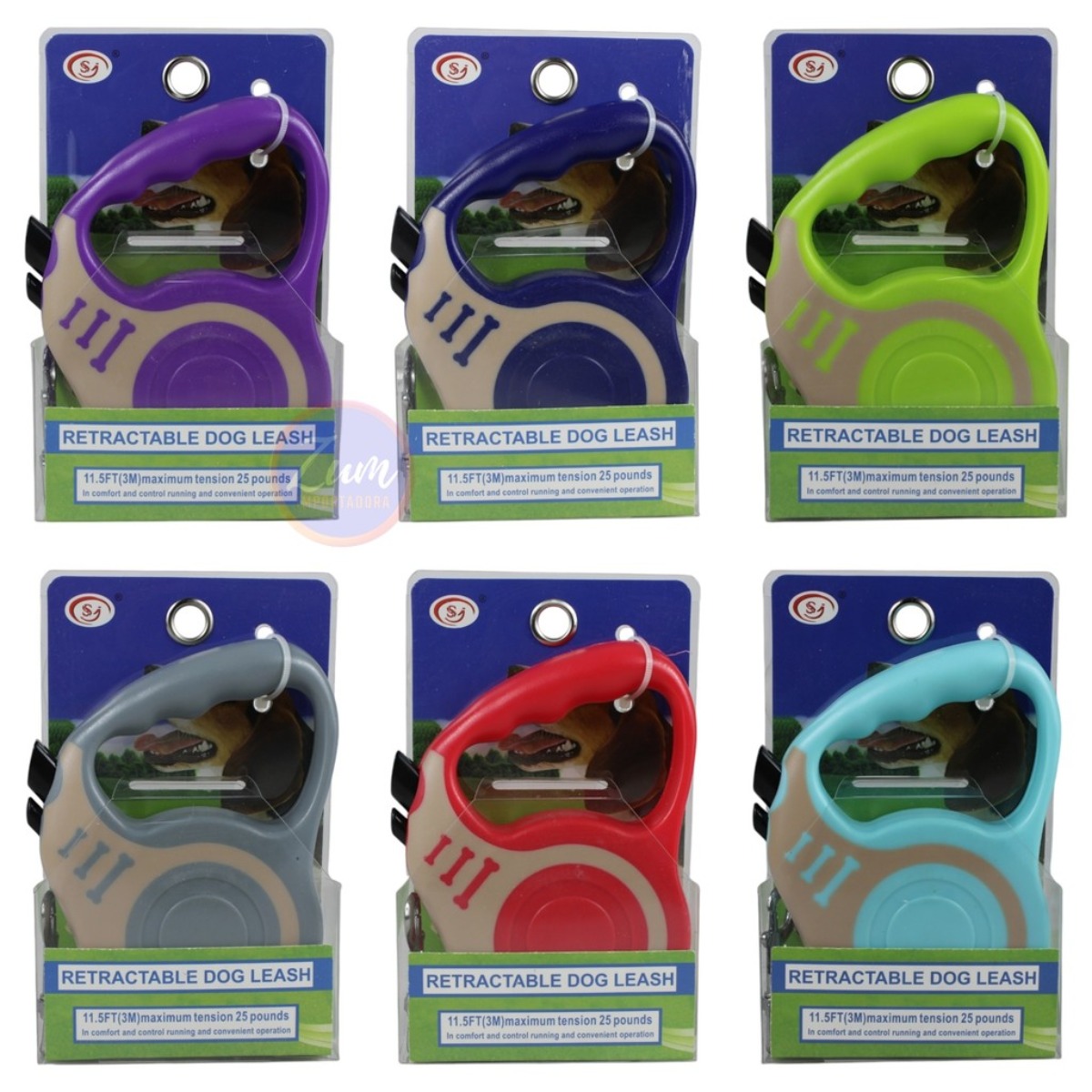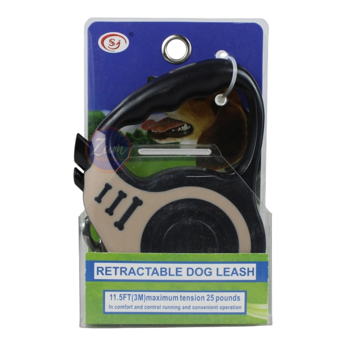 Guia retrátil para coleira, 3 metros, para animais de estimação, cães e gatos, com trava, até 11,33 kg.