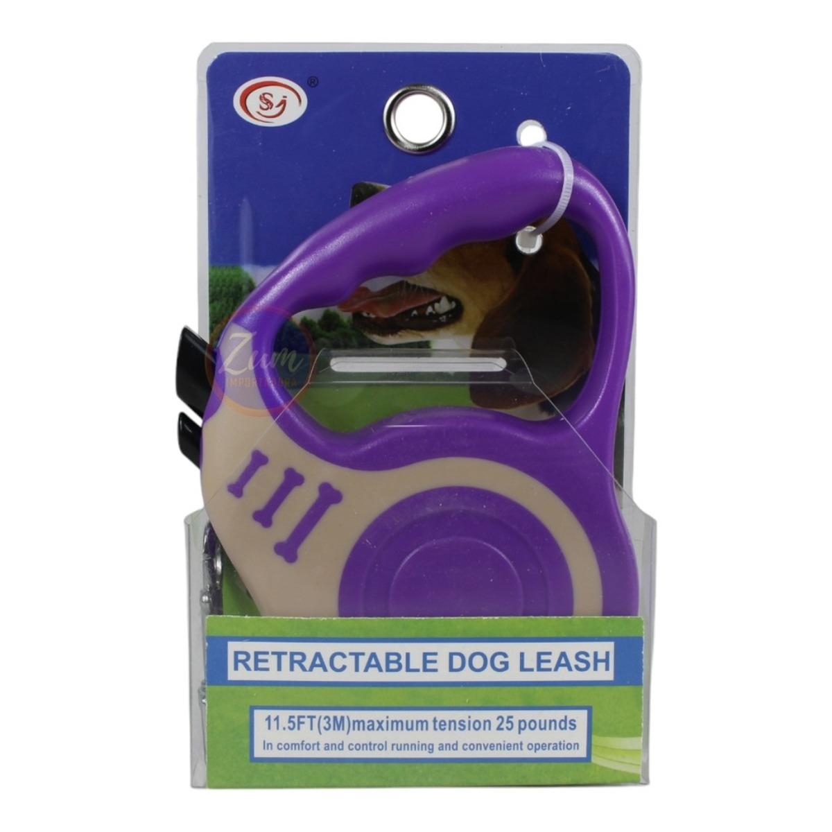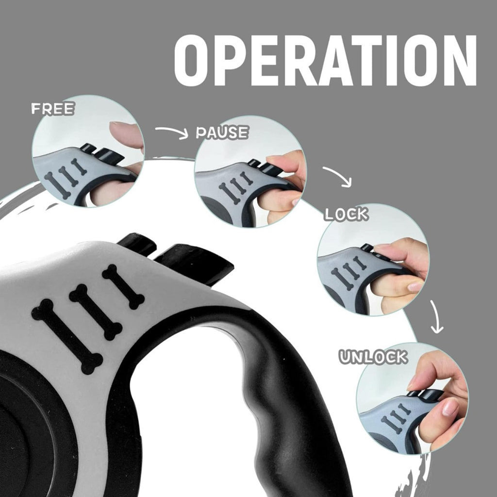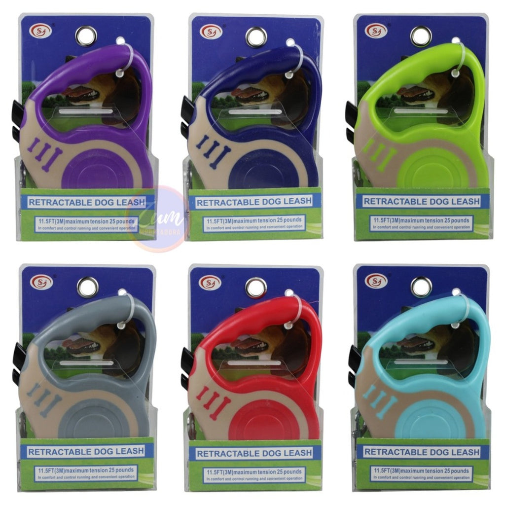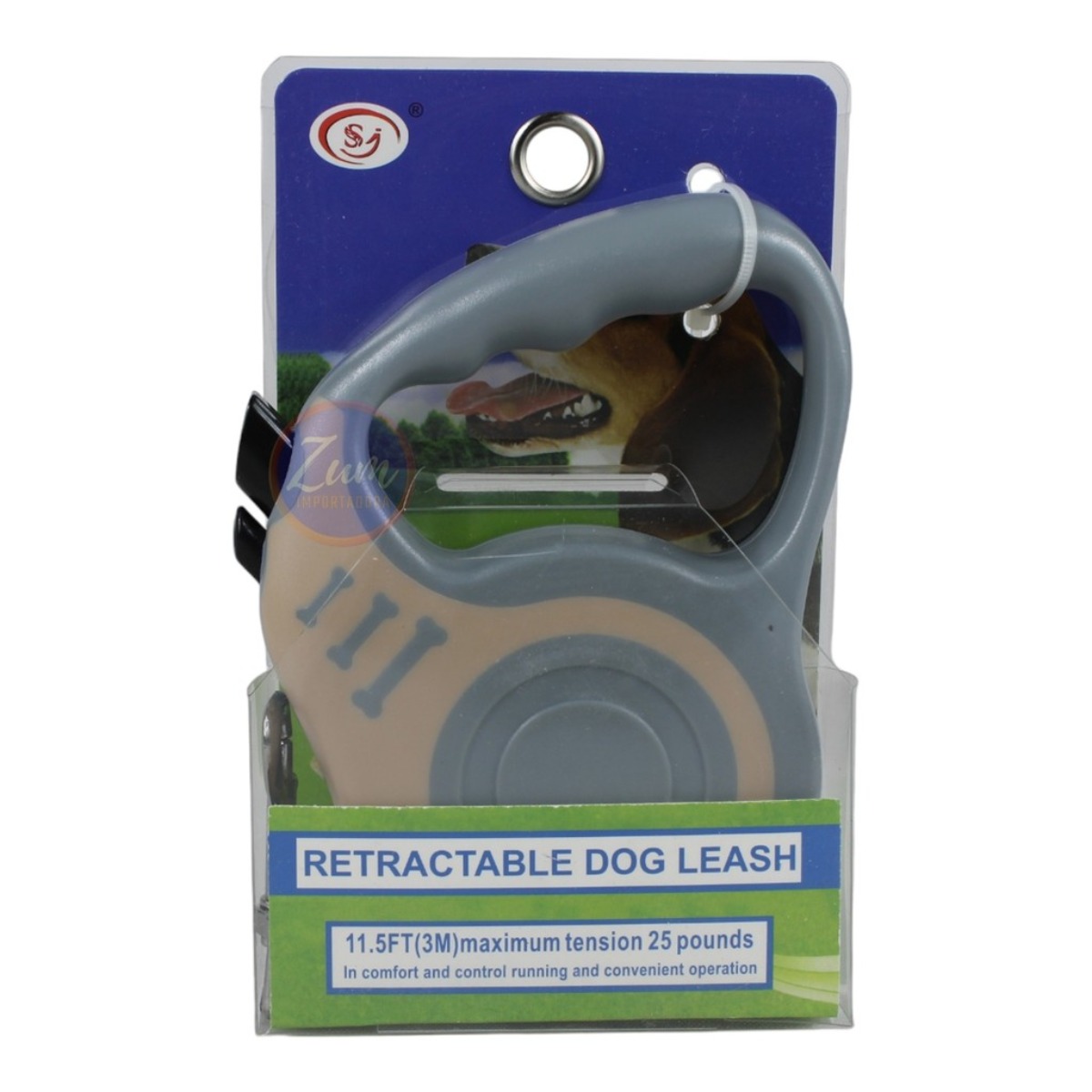 Guia retrátil para coleira, 3 metros, para animais de estimação, cães e gatos, com trava, até 11,33 kg.