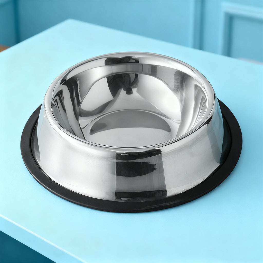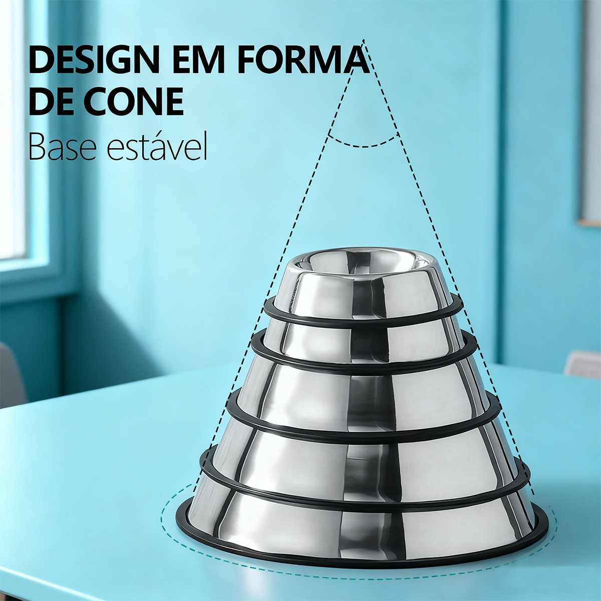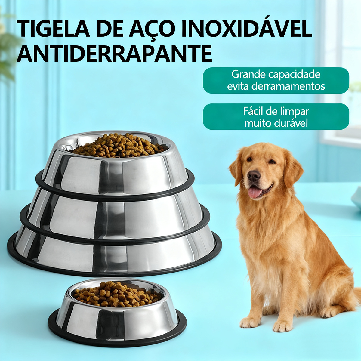 Comedouro antiderrapante em aço inoxidável para cães e gatos.