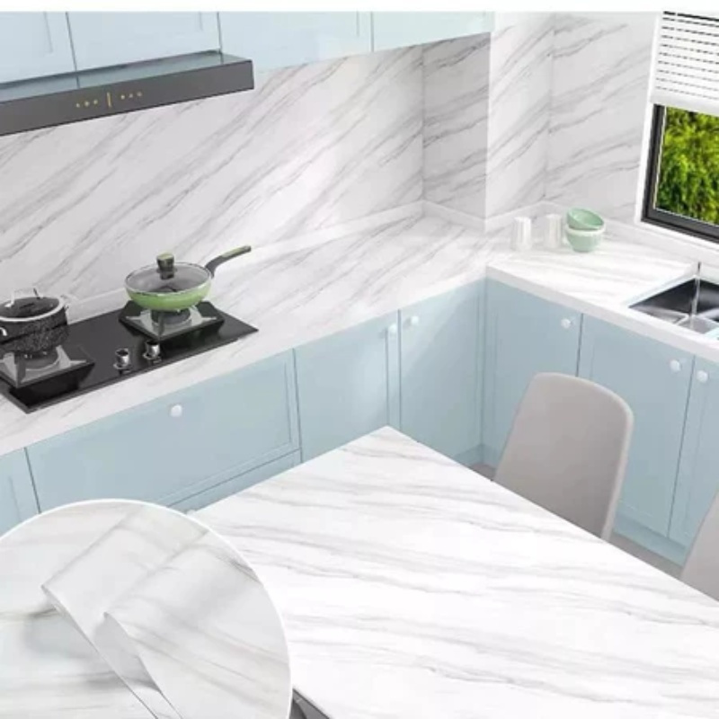 1 rolo de papel de parede com estampa de mármore branco, à prova de óleo, impermeável e resistente ao calor, autoadesivo e decorativo para cozinha, banheiro, quarto e sala de estar. Fácil de aplicar e remover.