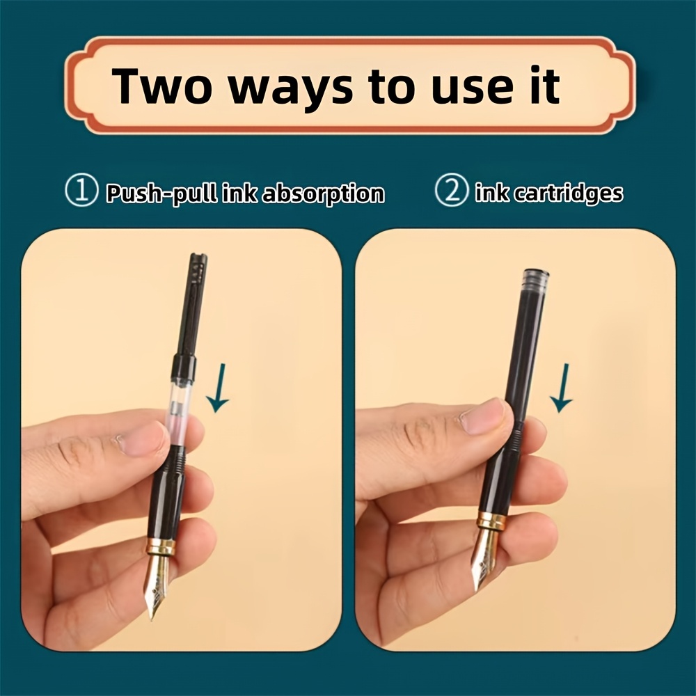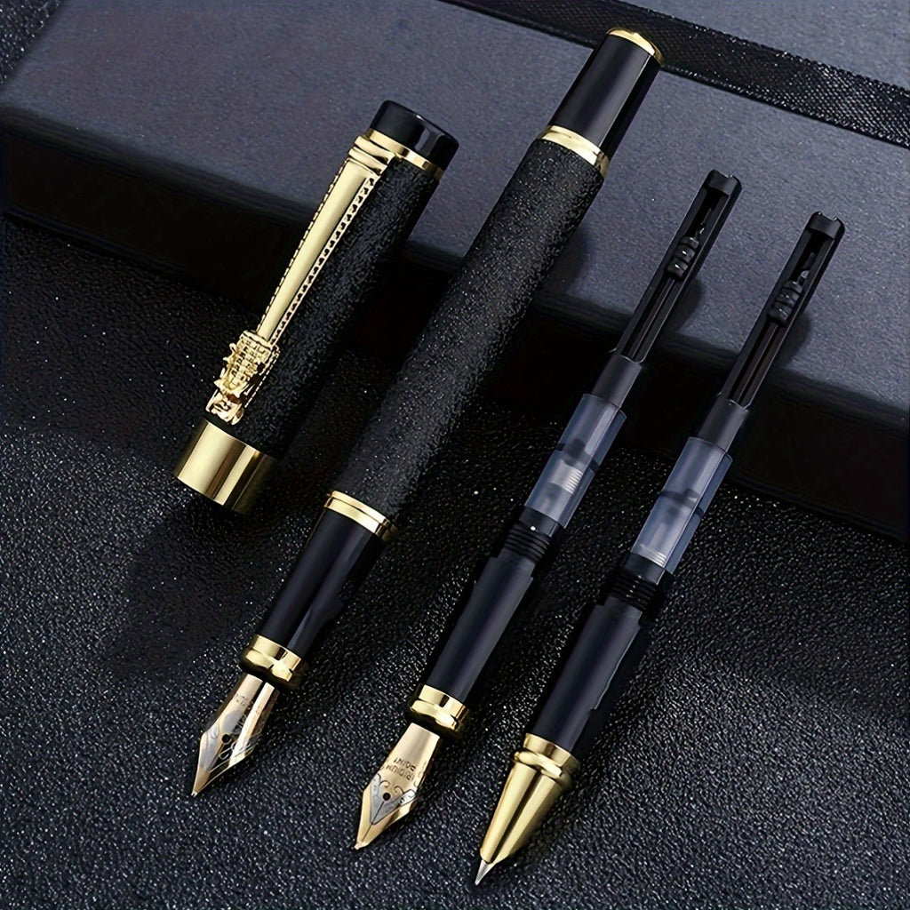 Conjunto de 3 canetas-tinteiro de luxo em metal com 10 tintas pretas.