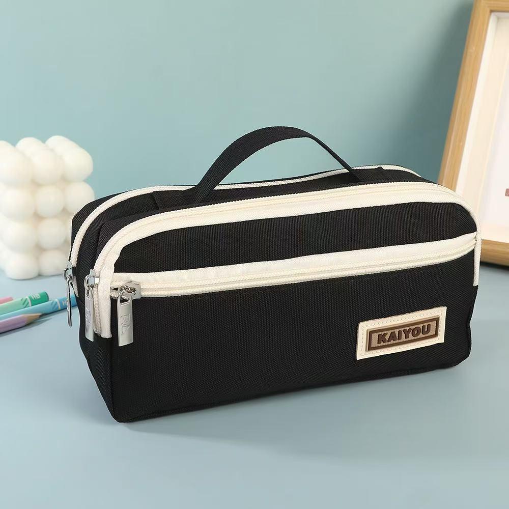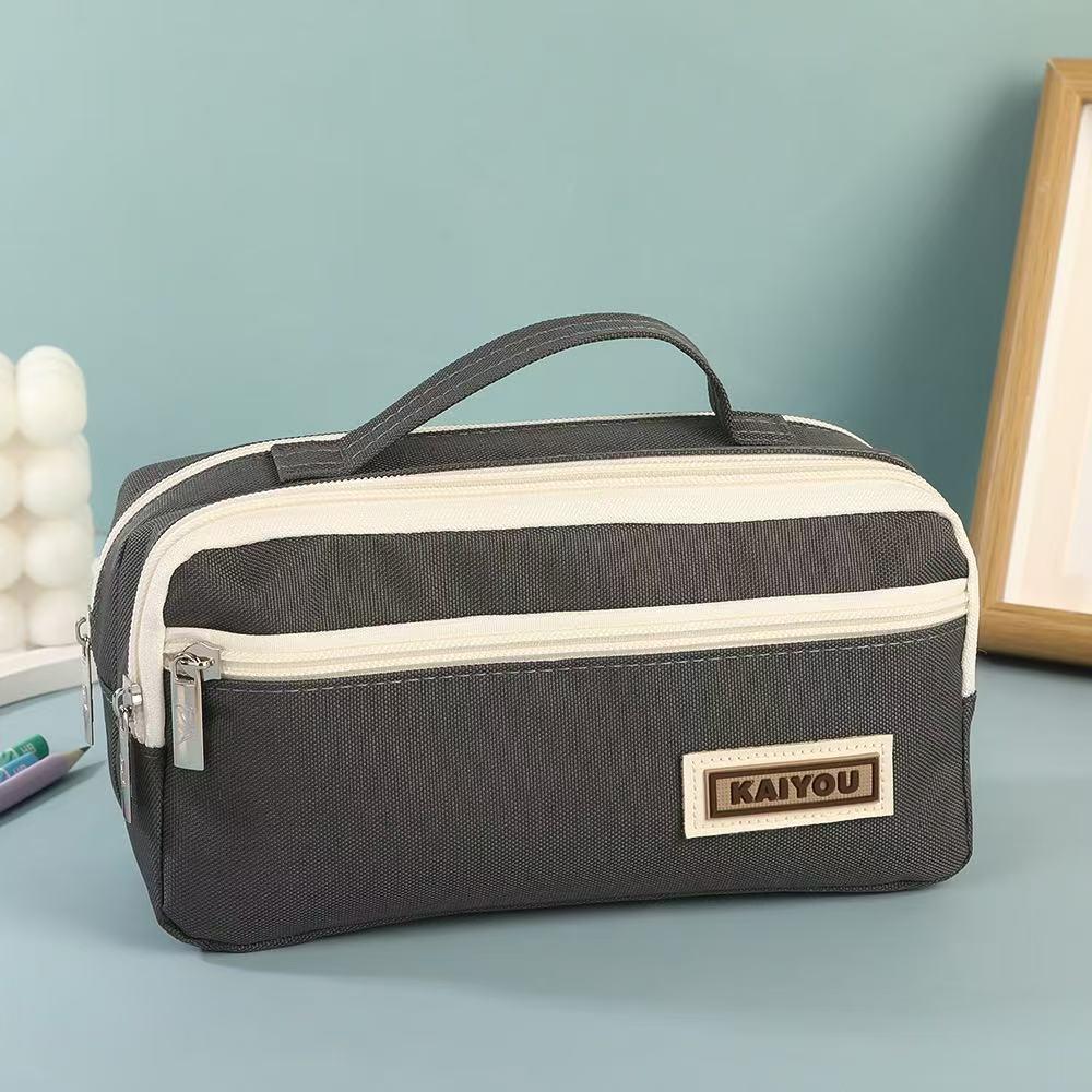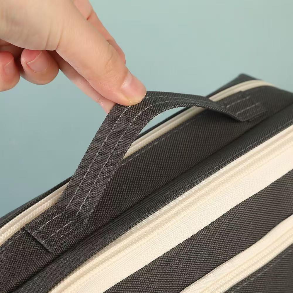 Estojo multifuncional em tecido Oxford com grande capacidade e 3 divisórias.
