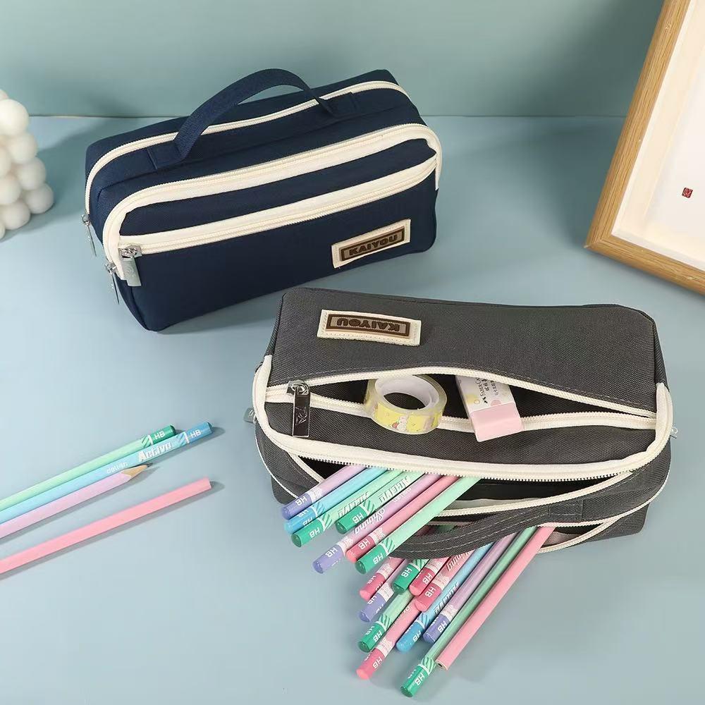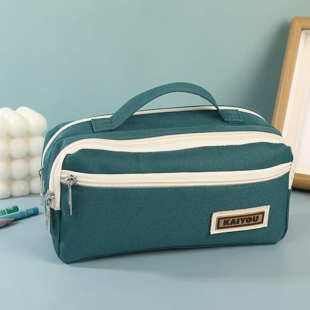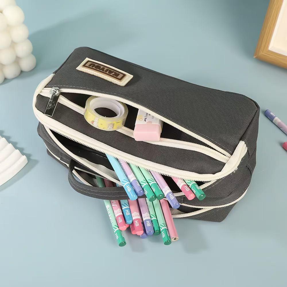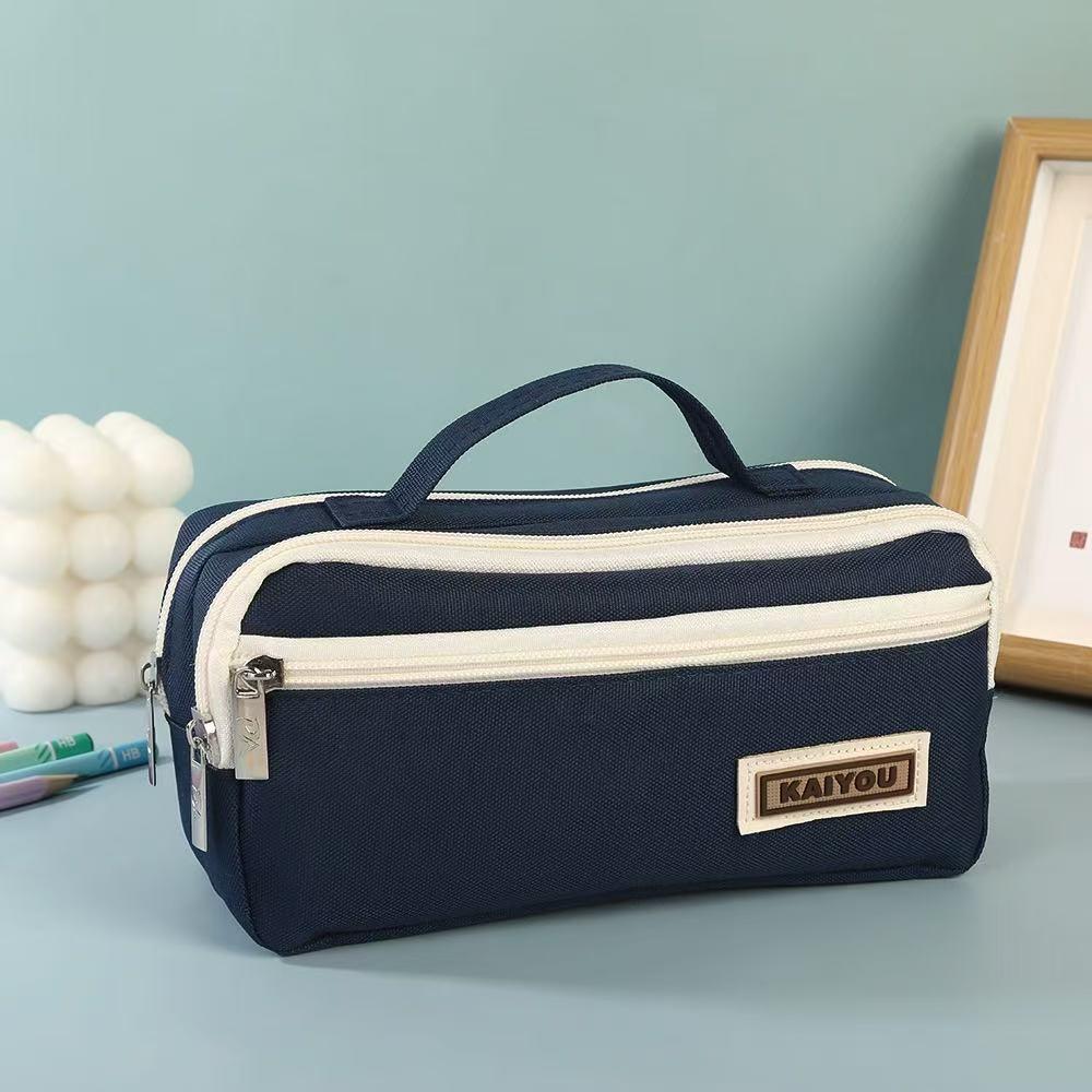 Estojo multifuncional em tecido Oxford com grande capacidade e 3 divisórias.