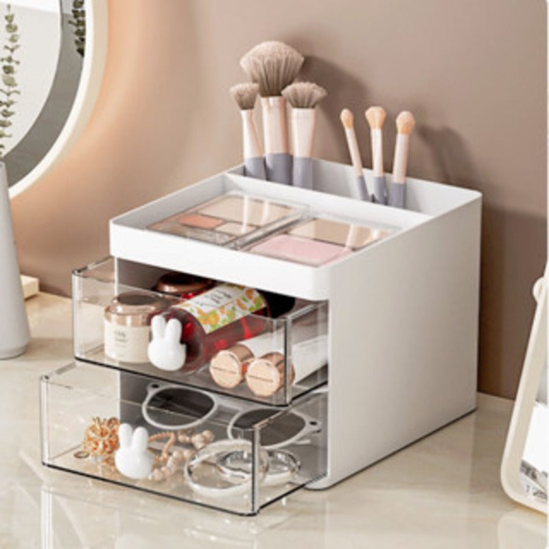 Organizador de mesa em formato de coelho - Bandeja multifuncional para canetas, gaveta para maquiagem e armazenamento de escritório.