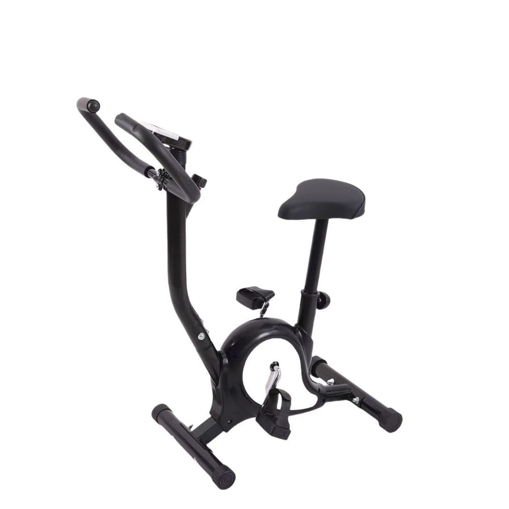 Bicicleta ergométrica residencial com correia para ciclismo e contagem de exercícios.