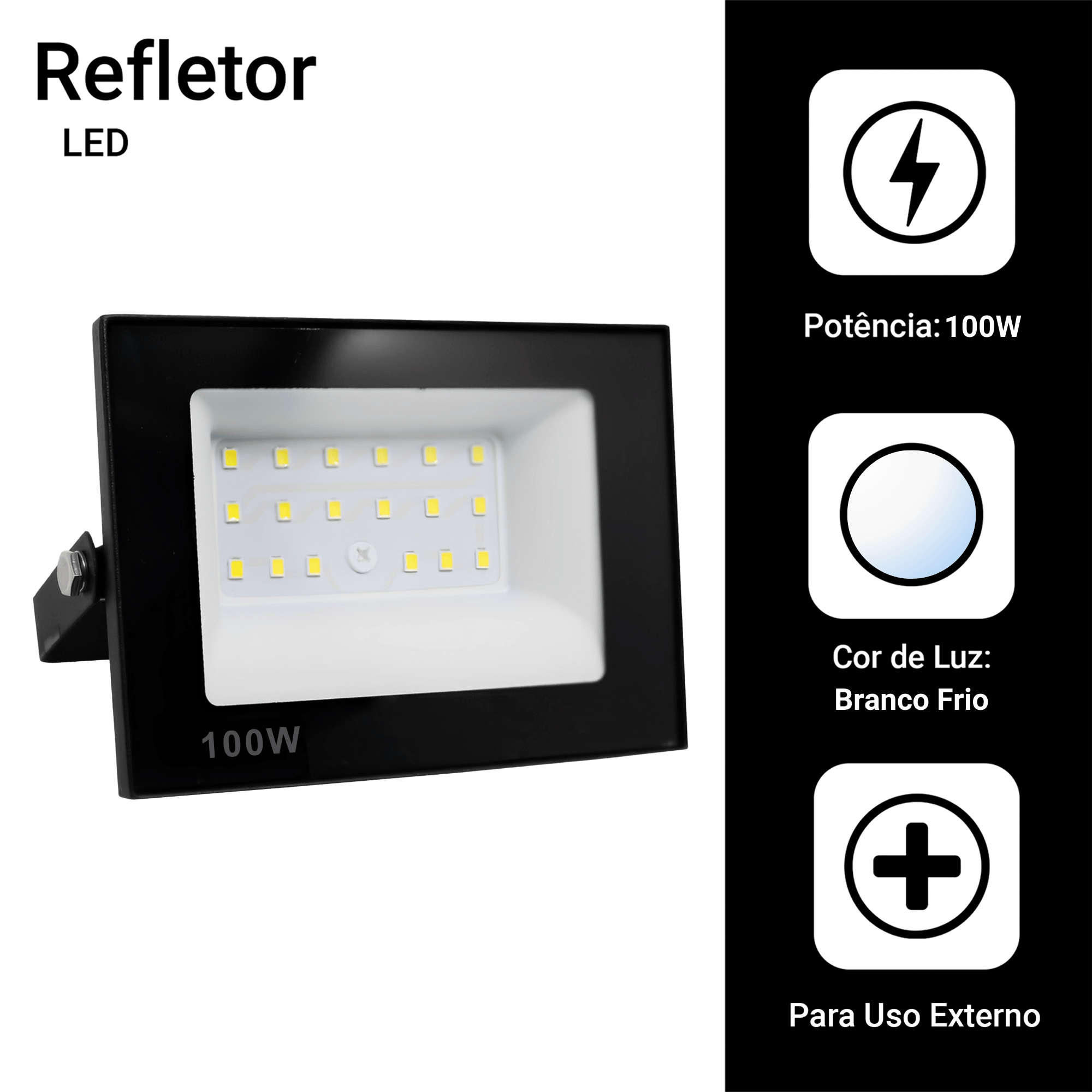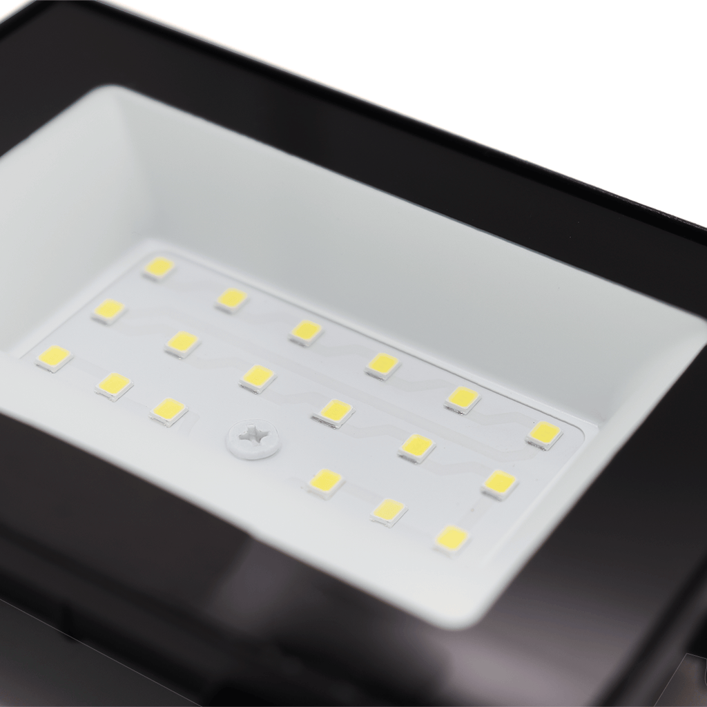 Estrutura em alumínio resistente, vida útil de até 30.000 horas e funcionamento estável entre -20°C e 50°C.