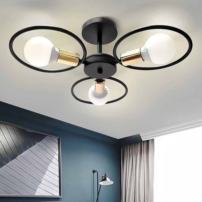 Luminária de teto nórdica em ferro, 1 peça, iluminação criativa e personalizada na cor preta.