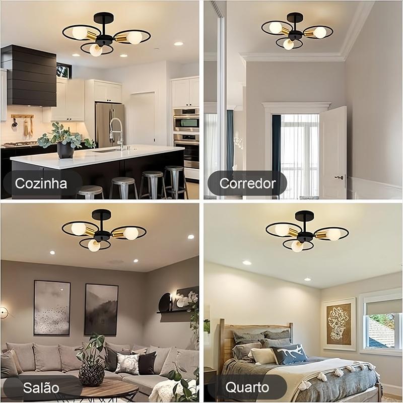 Seu design inovador com braços anelados distribui a luz de maneira homogênea, eliminando sombras e proporcionando uma iluminação confortável e acolhedora.