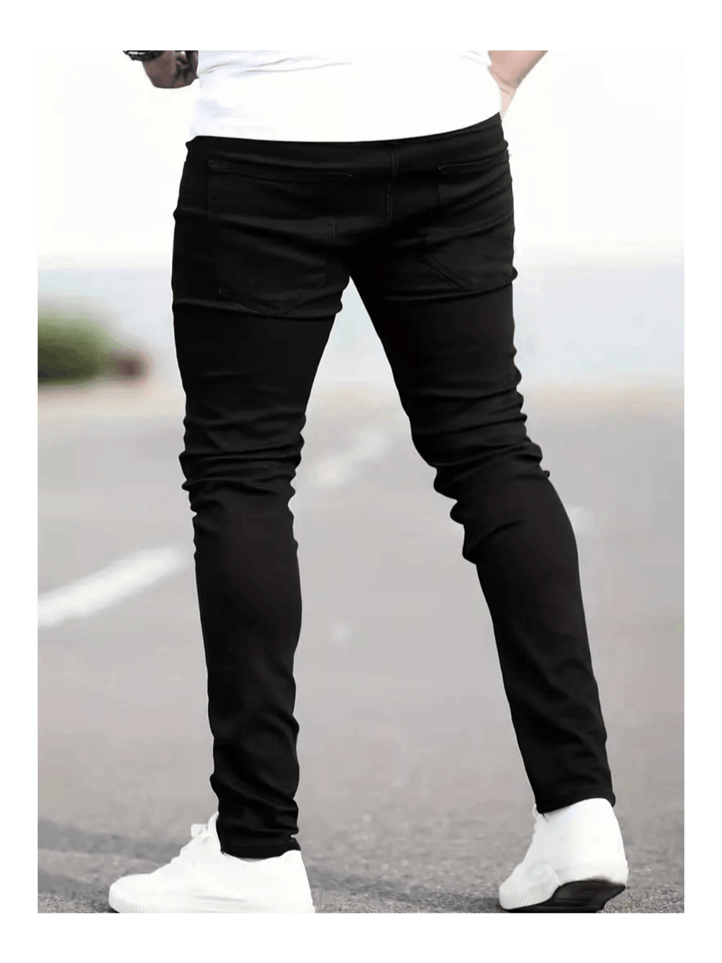Calça jeans preta masculina, corte slim, casual e básica, confortável para uso diário.