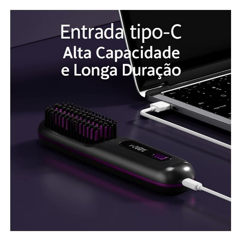 ✨ Escova Alisadora Sem Fio com Visor Digital – Praticidade e Beleza em Qualquer Lugar!