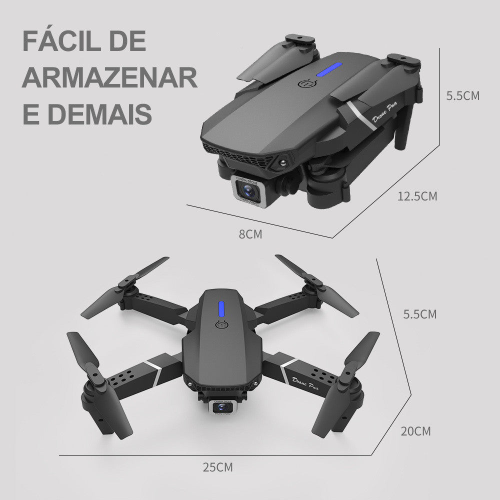 Apresentamos o Drone E88 Pro 4K Wi-Fi FPV, a fusão perfeita entre inovação, praticidade e diversão. Projetado para capturar imagens incríveis com estabilidade e segurança, ele é ideal tanto para iniciantes quanto para entusiastas que buscam qualidade e confiança em cada voo.